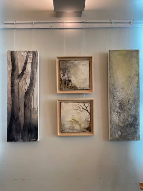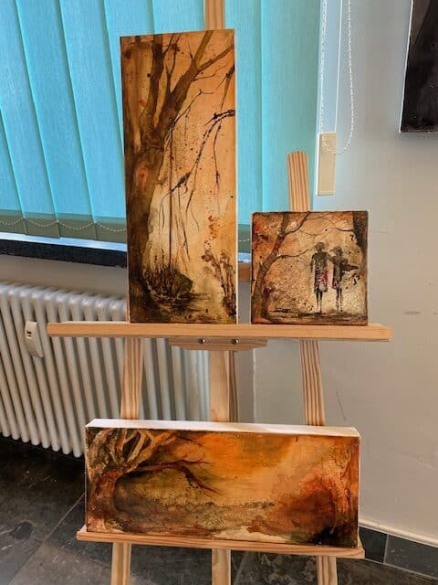 Ulrike Lierse und Florian Kunz nutzten die heutige Möglichkeit, das Konzept Der Waldstatt interessierten Besuchern vorzustellen und zu erläutern. Meine Ausstellung „Website trifft Galerie“ wurde in diesem Zusammenhang der Öffentlichkeit gezeigt. Zum heutigen Anlass stellte ich aktuelle Arbeiten von mir vor: Wasserturm in Premnitz (Öl), Steintorbrücke in Premnitz (Öl) und An der Stremme (Öl) sowie vier Arbeiten in Mixed Media. In diesen habe ich Birkenrinde unterschiedlich eingearbeitet. Sie fanden besondere Aufmerksamkeit. Anregende Gespräche mit den Gästen in den Räumlichkeiten wurden im Garten der Einrichtung fortgesetzt. Die familiäre Atmosphäre ließ viele bei Kaffee und Kuchen länger verweilen.