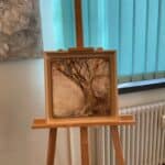 An vier Tagen arbeiteten wir ausschließlich in Techniken mit Sumpfkalk. Ich nutzte diese Möglichkeit, um meine Ausstellung im September weiter vorzubereiten. Ein junger Mann, Mathias Schmidt, fertigt für mich weitere Rahmen aus Zigarrenkisten an. Für diese besondere Rahmung fand ich ein geeignetes Motiv – ein Segelboot in Sumpfkalk.