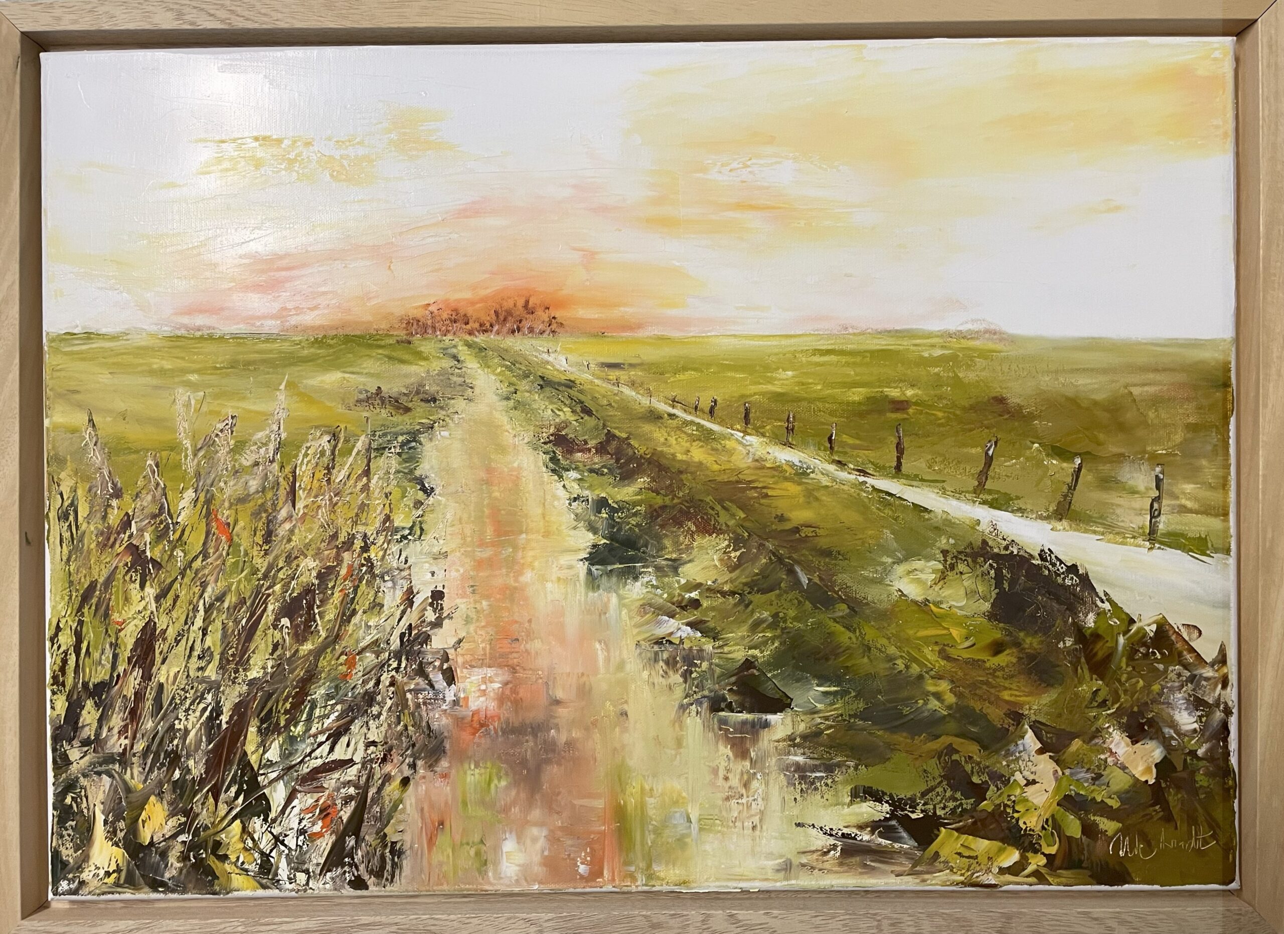 Meine Ölbilder entstehen, indem ich mit einem Malspachtel die Farbe pastos, also direkt aus der Tube und im Wesentlichen unverdünnt, auftrage. Trotzdem hat der Betrachter bei den meisten Bildern den Eindruck, sie seien mit dem Pinsel gemalt, so fein ist der Farbauftrag.